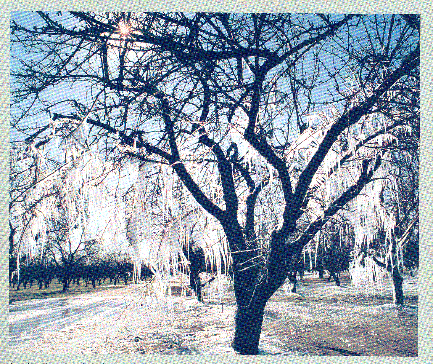 Its seems counter-intuitive, but fine mist irrigation by sprinklers is used to reduce frost damage.