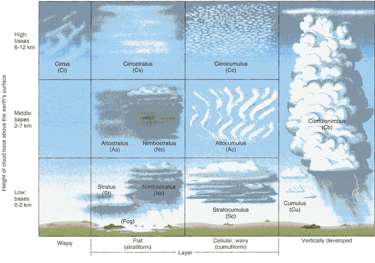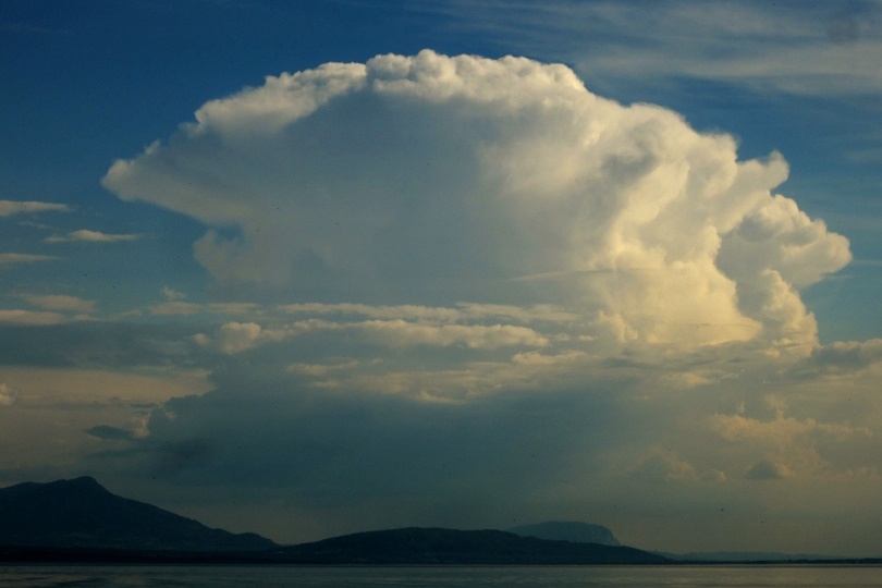 Large vertical extent; water droplets at low level, but upper levels are made of ice. Often lead to thunder storms and heavy showers. Photo: A. Christen