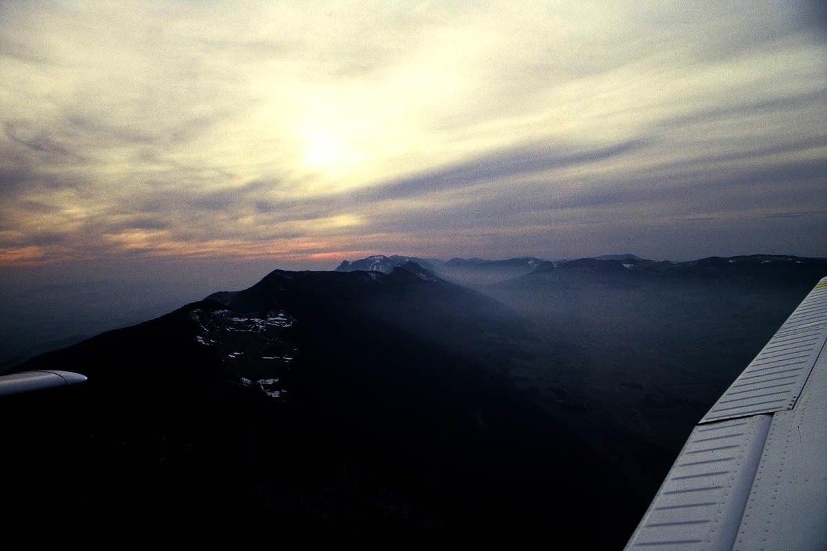Ice clouds as lots of puff balls, or in rolls (aircraft contrails). Photo: A. Christen