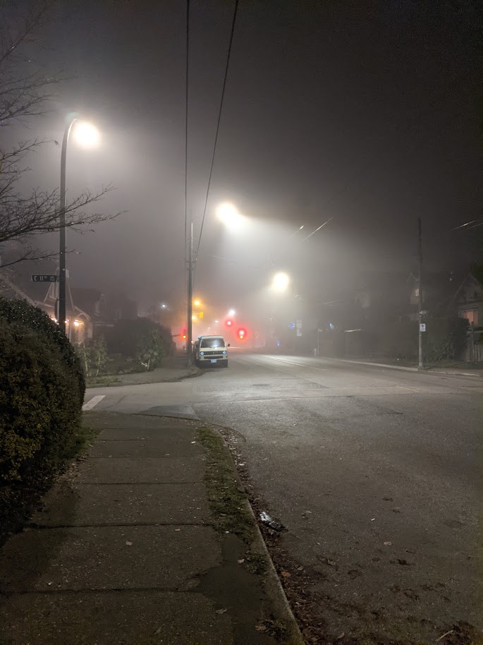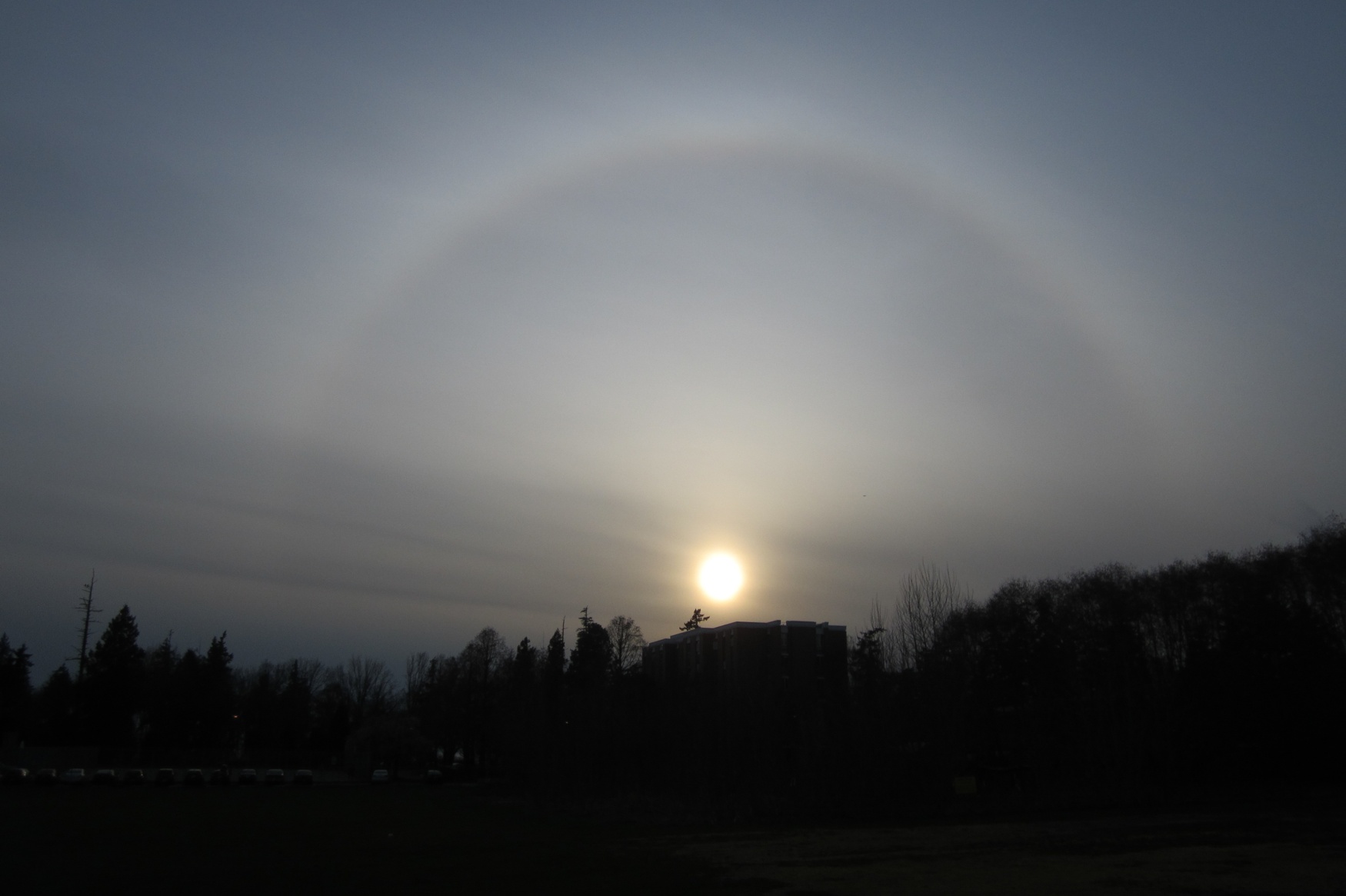 Fibrous outline gives halo around Sun or Moon due to the refraction of light by thin layer of ice crystals, here above UBC Totem Field. Photo: A. Christen