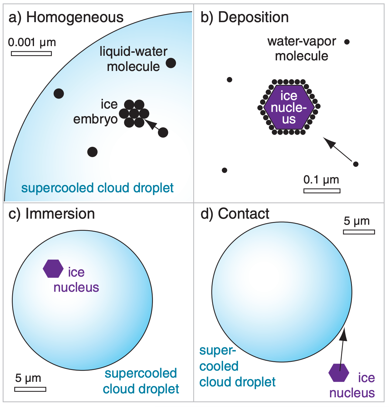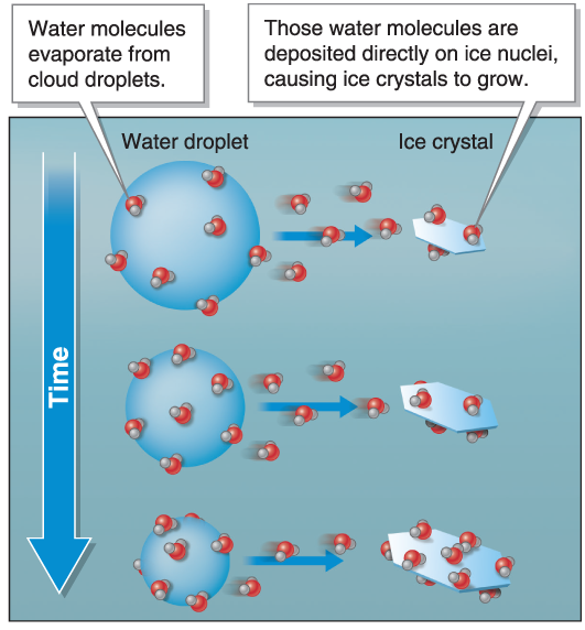 Requires a mixture of ice crystals, water droplets, and water vapor co-existing at temperatures below freezing