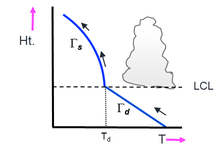 After saturation, the rate of cooling is reduced due to release of latent heat.