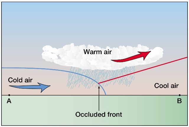 Explain the difference between warm fronts, cold fronts and occluded front.