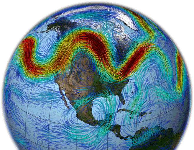 Snake around the globe from W to E and steer weather disturbances (mid-latitude Lows)