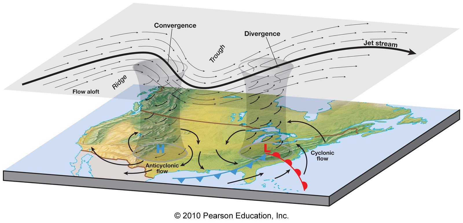 Flow dynamics in jet streams promotes the formation of high and low pressure systems.