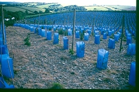 These enclosures provide a source of longwave radiation to the young grape plants at night